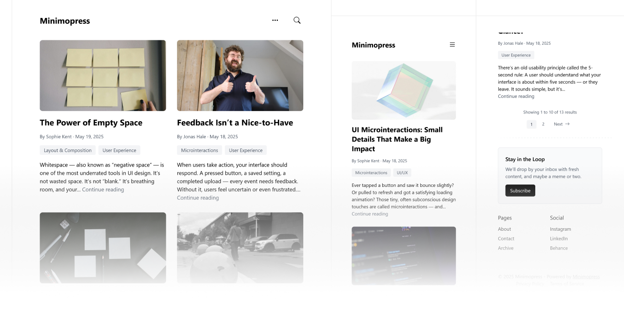 Minimopress is a fast, modern, and lightweight WordPress theme built for simplicity and performance. With a clean layout and a minimal design approach, it helps you focus on what matters most — your content. No clutter, no distractions — just a theme that works out of the box.